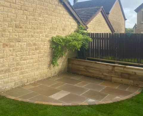 As of June 2025, we are proud to have been chosen to create the flagging and walling display for JT Atkinson Builders Merchants (Yeadon). We provide expert landscaping knowledge and delivery from laying new flags to walling throughout the entire journey from quoting to the final checks.
